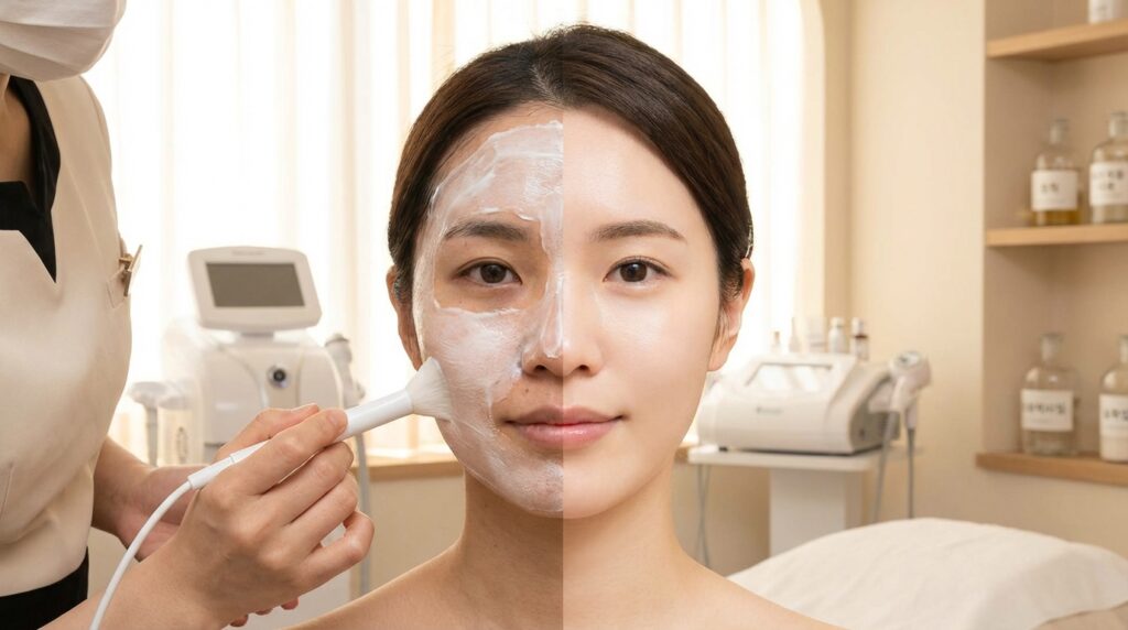 剥離なしハーブピーリングやプラズマフェイシャルは、**施術直後からメイクが可能**です。ダウンタイムがほとんどないため、仕事前の朝や昼休みに施術を受けて、そのまま予定を続けられます。ただし、施術当日は肌が敏感になっているため、優しいメイクアップを心がけることをおすすめします。