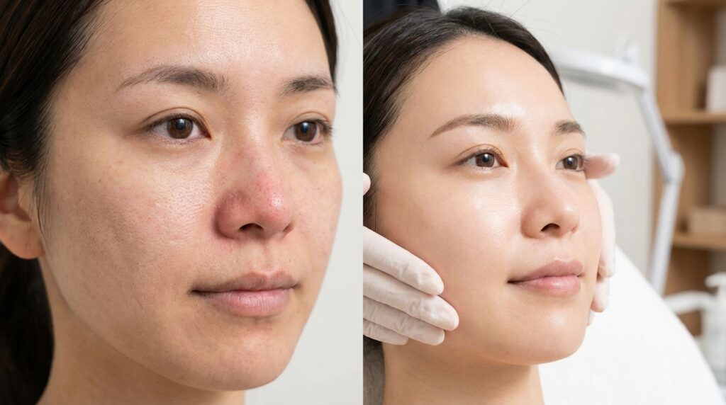 施術によって肌の水分保持力が向上し、メイクによる乾燥や刺激に対する耐性も強化されます。継続的な施術により、メイクをしても肌トラブルが起こりにくい健康的な肌質を実現できます。
