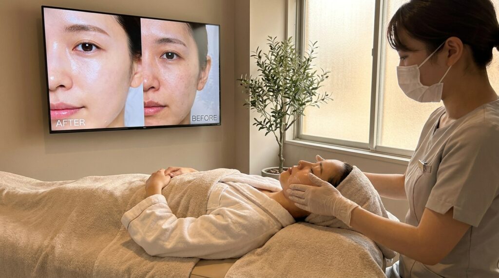従来のフェイシャルがリラクゼーション効果を重視するのに対し、韓国肌管理は結果重視。継続的なケアで肌質そのものを変えていく考え方が根底にあります。そのため、一度の施術でも肌の変化を実感しやすく、継続すれば根本的な肌質改善が期待できるのです。
